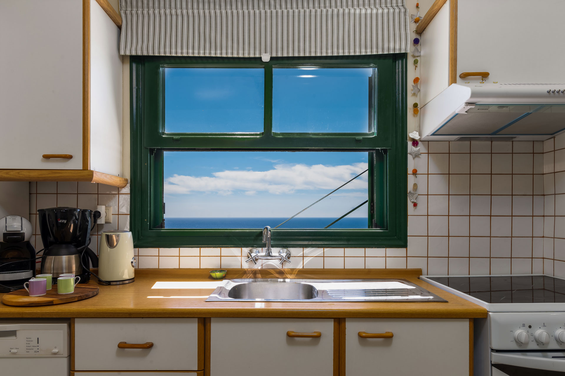 KITCHEN (ground floor): Refrigerator, freezer, oven, stovetop, coffee maker, electric kettle, kitchenware, dishes & utensils.