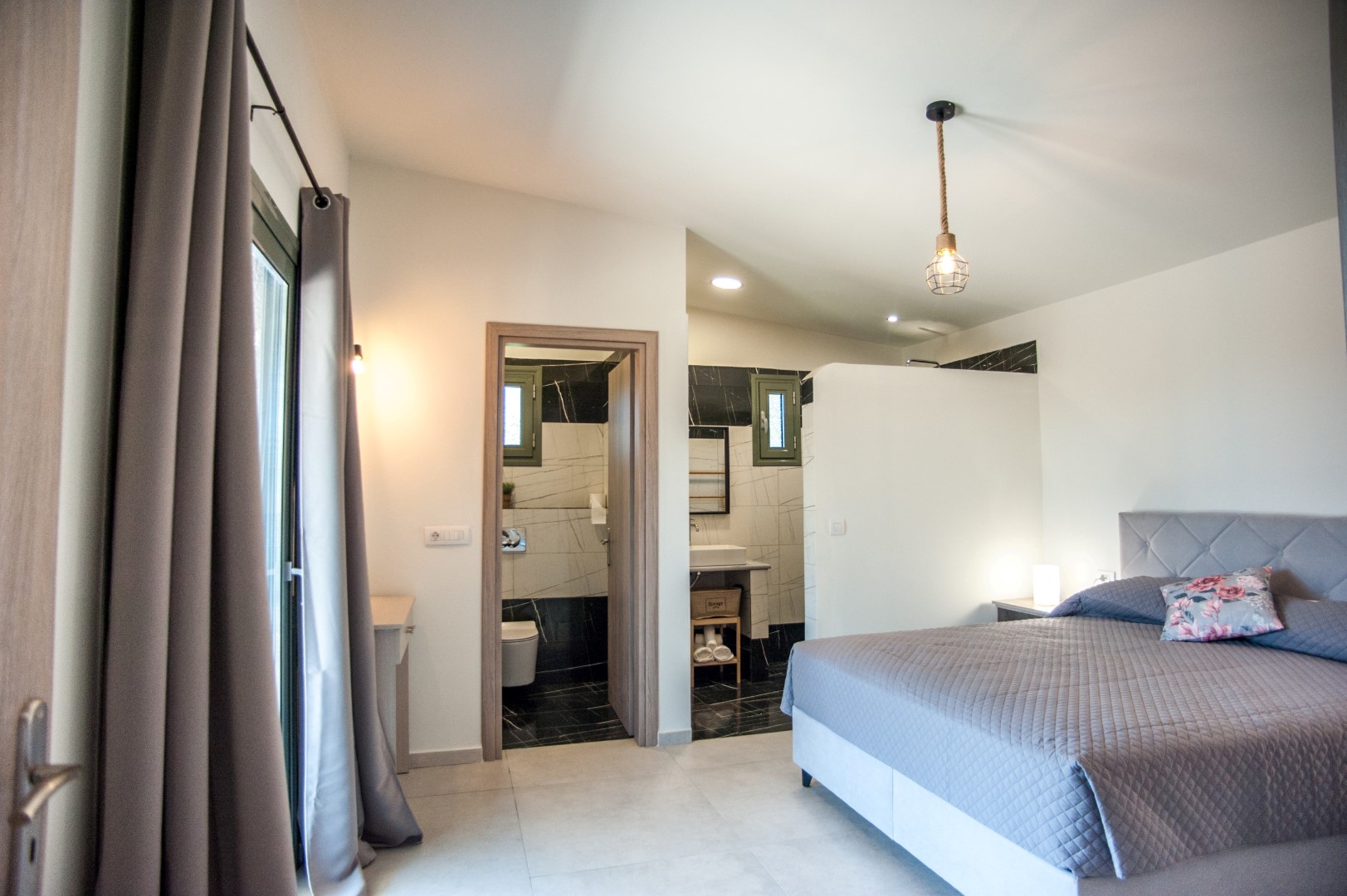 MASTER BEDROOM (Ground floor): king size bed, socket near the bed ,ensuite bathroom with shower, Balcony sea view.