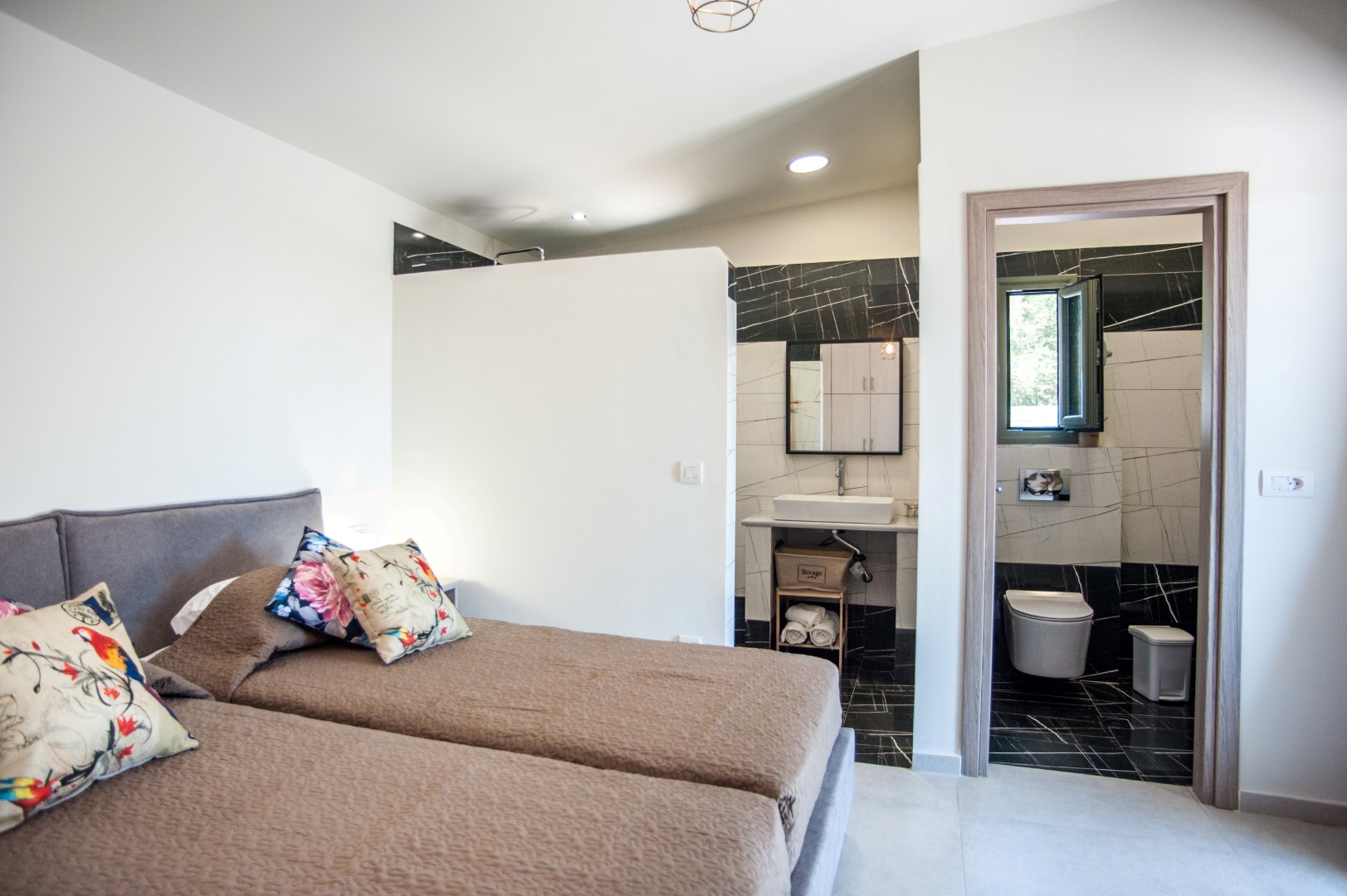 2nd bedroom (Ground floor): Two beds, ensuite bathroom with shower, socket near the bed, Balcony sea View.